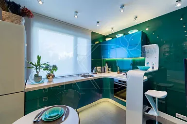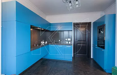 Мебель в таких тонах делает помещение ярким и нестандартным. Чтобы яркого цвета не было слишком много, его лучше дополнять более нейтральными. Например, удачно будут смотреться синие фасады кухонного гарнитура в сочетании с белыми стенами и серыми акцентами.
