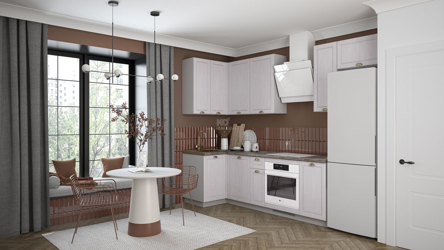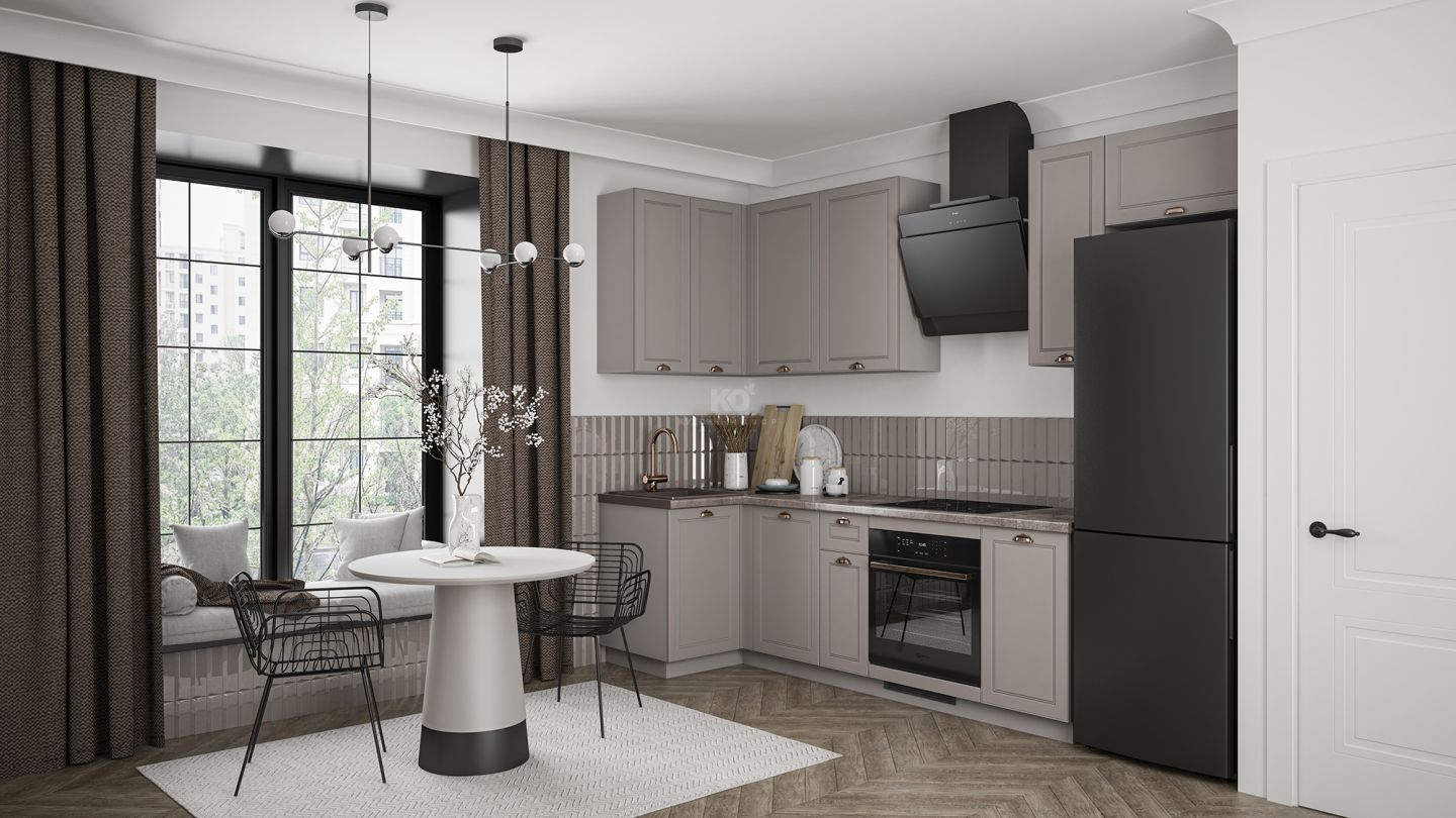 Угловая Лея — это кухня, где простота интегрируется в стиль. Лаконичные классические фасады отвечают запросу на традиционность в дизайне и создают ощущение лёгкости, а акцентный цоколь добавляет выразительности.